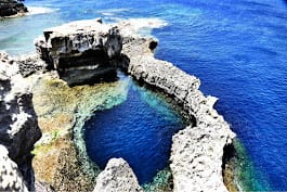 La baia interna che circonda il Blue Hole ha una larghezza di 60 metri e una profondità massima di 28 metri, permettendo di emergere in qualsiasi momento durante l’immersione. La baia è circondata da scogliere, aggiungendo valore estetico all’immersione.
